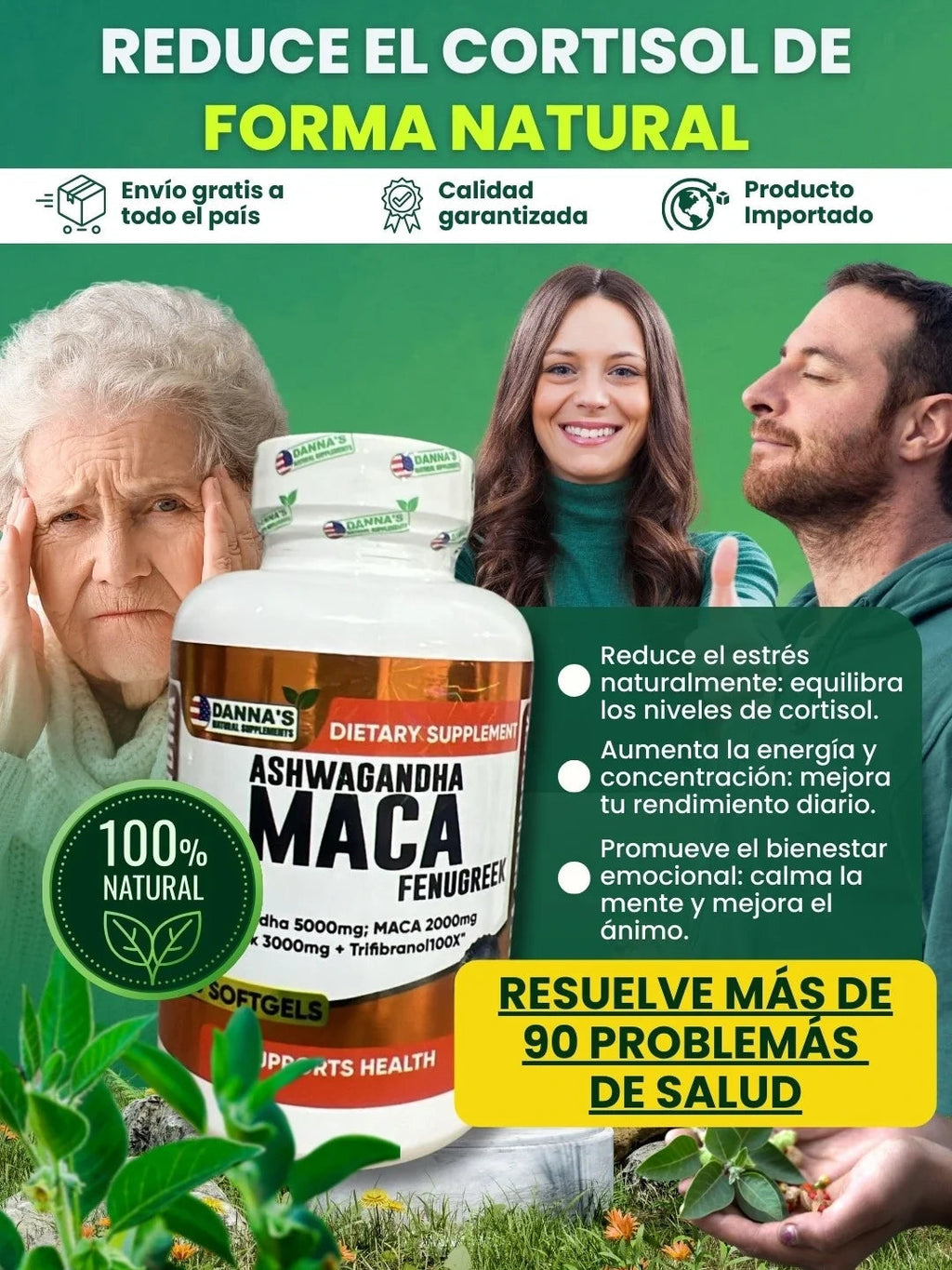 En poco tiempo dile adiós a la ansiedad que te consume. Ashwagandha te ayuda a reducir el cortisol y mejorar tu estado de ánimo. ¡Mira cómo tu confianza y tranquilidad se renuevan rápidamente.