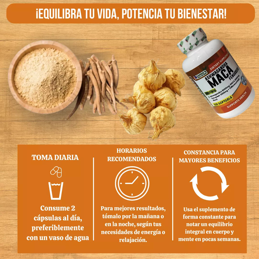 ¿Necesitas un impulso cognitivo? La Ashwagandha apoya el rendimiento intelectual y ayuda a reducir la ansiedad y mejorar el enfoque. Ideal para aquellos que buscan mantener su mente clara, productiva y sin estrés. ¡Dile adiós a la fatiga mental y pon en marcha tu cerebro!